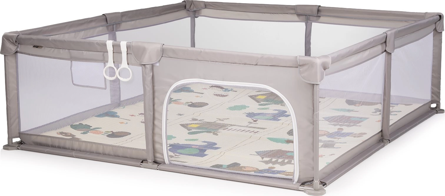 Copilul are suficient spațiu pentru târât, joacă și primii pași. Panourile din plasă asigură flux optim de aer și contact vizual neîntrerupt.