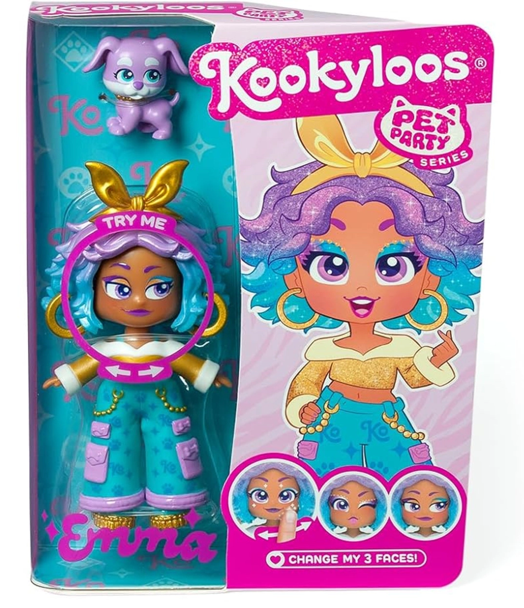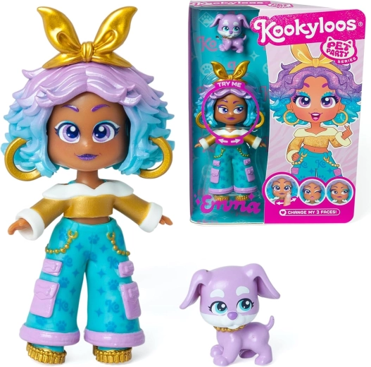 Descoperă lumea KookyLoos cu figurina de colecție Emma – Pet Party. Figurina are un outfit caracteristic, coafură modernă și accesorii asortate temei seriei. Prin rotirea capului, Emma capătă trei expresii diferite, astfel poți exprima emoții și crea propriile povești.