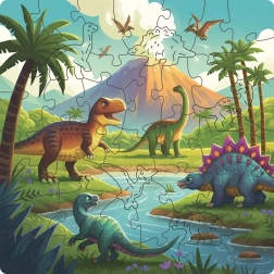 Pe lângă piesele puzzle-ului, în pachet vei găsi și 4 figurine din lemn, pe care copiii le pot integra în propriile povești. Acest set susține abilitățile de coordonare, concentrarea și răbdarea, oferind în același timp multă distracție cu tema preferată a dinozaurilor.
