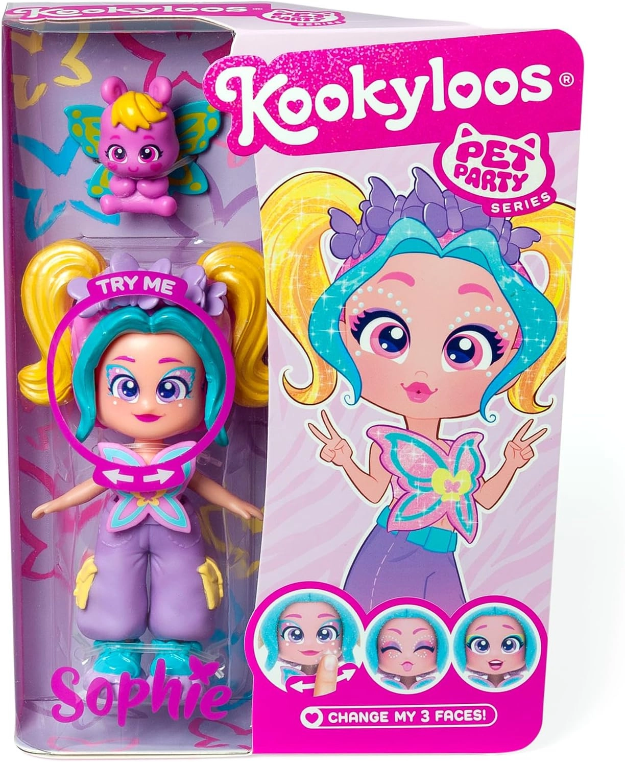 Păpușa KOOKYLOOS Pet Party Sophie îmbină stilul fashion, o personalitate accentuată și dragostea pentru animale. În pachet găsești păpușa cu ținută stilată, coafură caracteristică și accesorii asortate temei party. Este inclus și un adorabil fluturaș, care extinde posibilitățile de joc și de creare a propriilor povești.