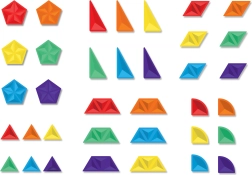 - Conținutul setului (36 buc.): 6 pentagoane, 6 triunghiuri echilaterale, 6 triunghiuri isoscele, 6 sferturi de cerc, 6 romburi, 6 trapeze + broșură ilustrată cu inspirații