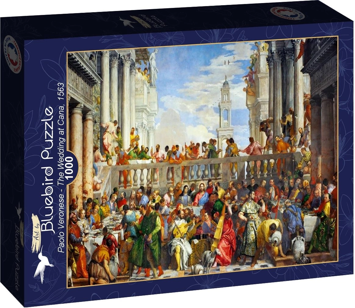 Descoperă arta atemporală pe masa ta cu puzzle-ul Bluebird Nunta din Cana, din 1000 de piese. Datorită imprimării de calitate și formelor tăiate cu precizie te vei bucura de culori vii, îmbinări precise ale pieselor și o experiență plăcută de asamblare până la dimensiunea de aproximativ 69 × 48,7 cm.