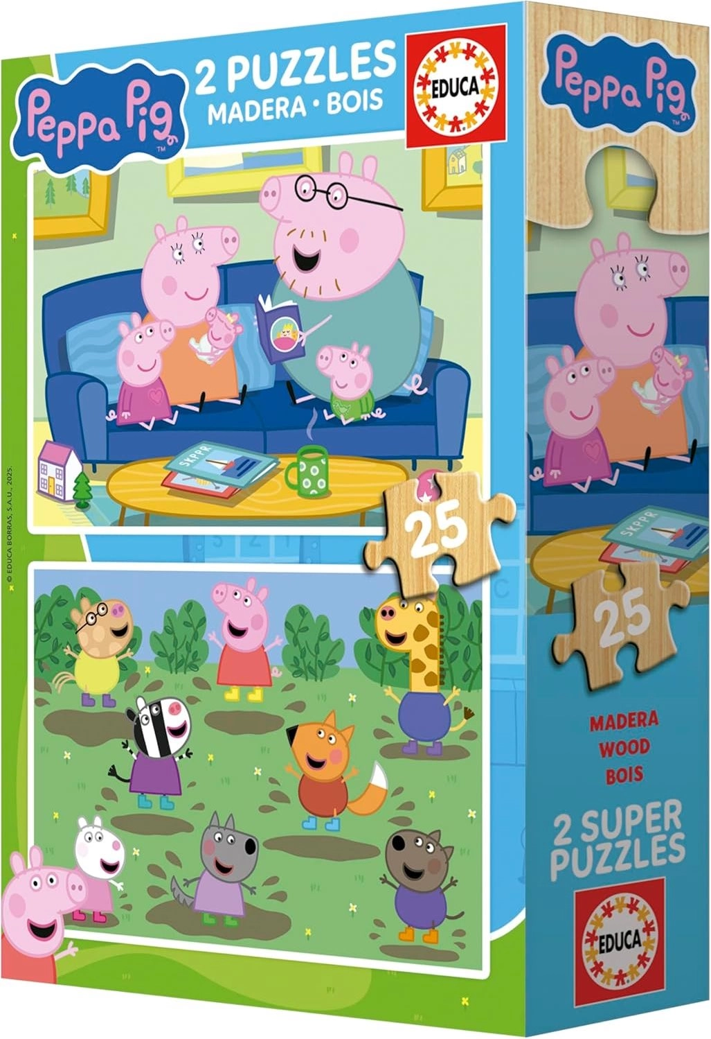 Descoperă puzzle-uri din lemn de calitate, cu tematica Peppa Purcelușa, în două imagini a câte 25 de piese. Puzzle-urile sunt realizate din lemn natural rezistent, au piese mari pentru manipulare ușoară și culori vii care îi atrag imediat pe copii. Primele puzzle-uri ideale pentru mânuțe mici și o alegere excelentă pentru dezvoltarea motricității fine și a concentrării.