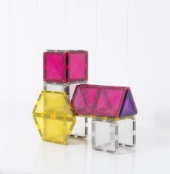 Plăcile translucide CONNETIX sclipitoare, în culori pastel, vor deveni cu siguranță preferatele fiecărui mic constructor. Datorită magneților puternici, piesele se conectează fiabil din toate părțile, astfel încât se pot construi cu ușurință modele 2D și 3D – de la decorațiuni cu unicorni la poduri, turnuri și castele. Fiecare îmbinare este însoțită de un „click” satisfăcător, care sprijină concentrarea și bucuria construcției.