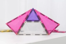 Pachetul de 56 de piese cu idei de inspirație susține abilitățile STEAM: gândirea spațială, geometria, fizica și motricitatea fină. Materiale sigure, fără BPA și ftalați.