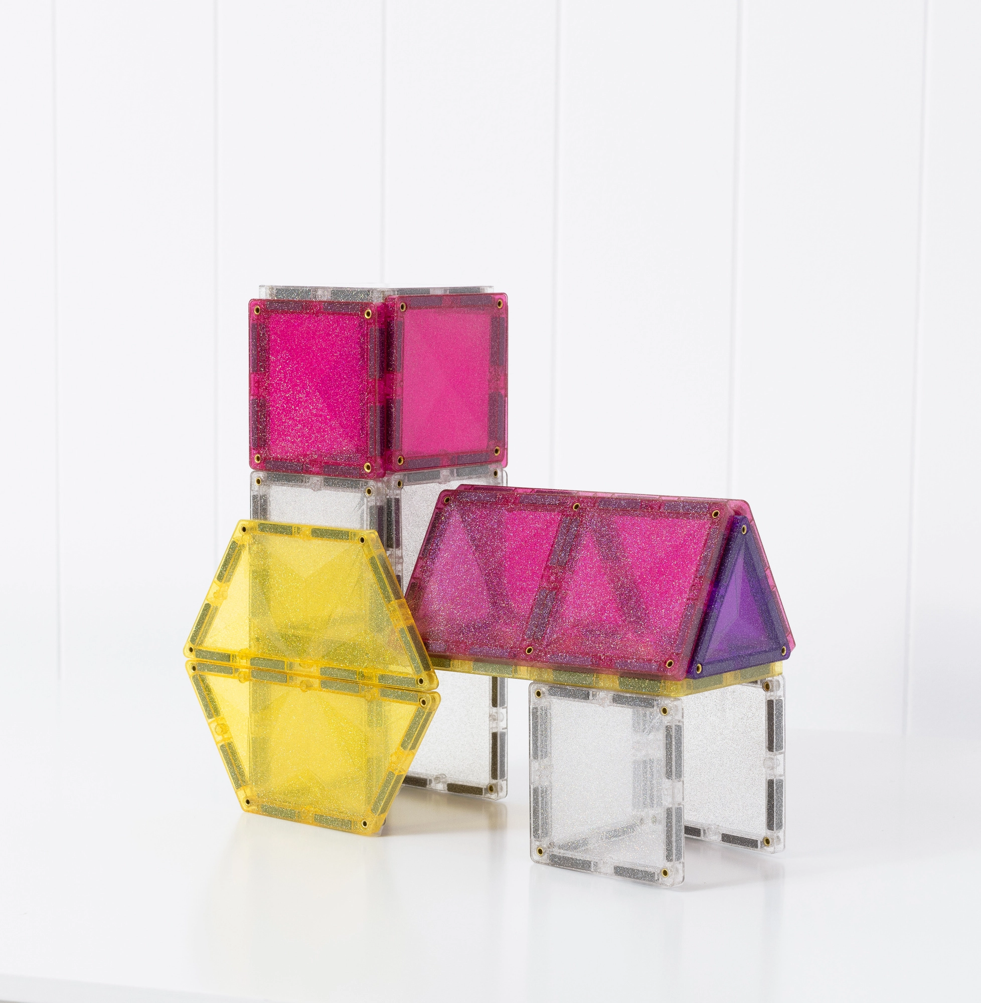 Aspectul glitter luminează orice construcție. Panourile translucide refractă frumos lumina și îi motivează pe copii să creeze motive originale cu unicorni și construcții 3D elaborate.