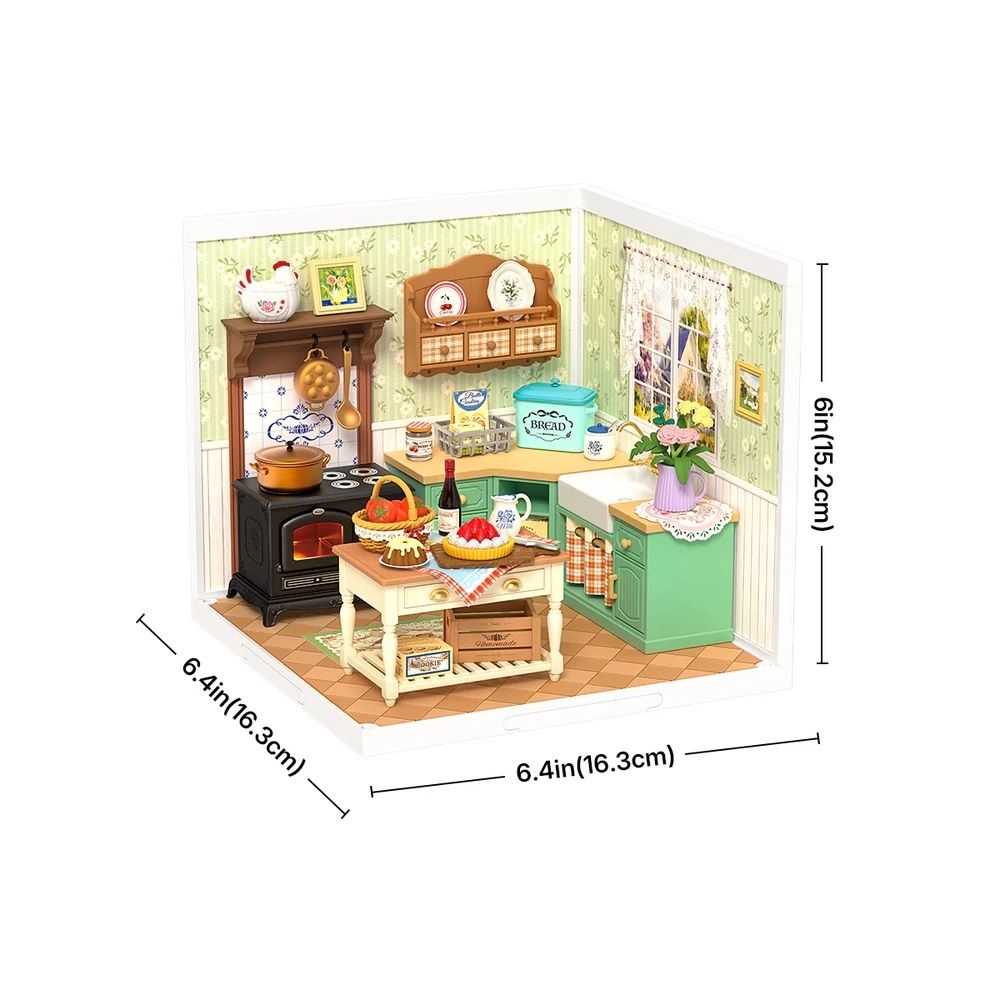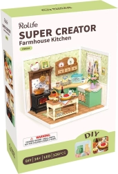 Descoperă lumea detaliilor și a confortului în miniatură. Acest set DIY precis te ghidează prin construcția unei bucătării de fermă cu aragaz, chiuvetă, insulă și o mulțime de accesorii realiste. Datorită iluminării LED, fiecare piesă de mobilier și decorațiune iese în evidență, iar modelul final devine un ornament impresionant pentru raft sau colțul de lucru.