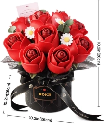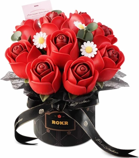 Acest set DIY creativ transformă momentele de lucru manual într-o experiență de neuitat. Buchetul realist cu trandafiri roșu-burgund, completat de margarete albe și eucalipt, este așezat într-o cutie rotundă elegantă cu fundă. Datorită tulpinilor ajustabile și petalelor modelabile manual, îți vei aranja cu ușurință compoziția exact după gust.