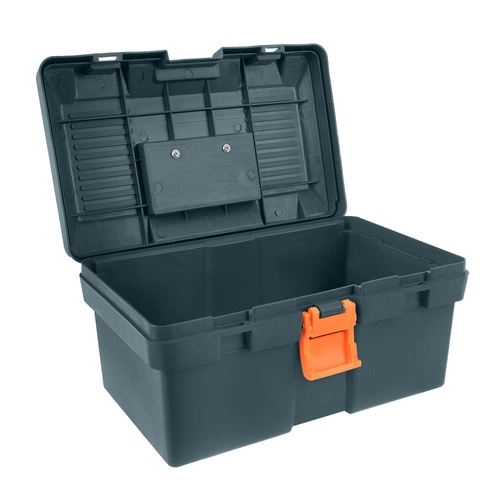 Cutia din plastic rezistent, cu organizator interior, păstrează toate piesele la un loc. Datorită mânerului și închiderii fiabile, transportul este ușor și sigur.