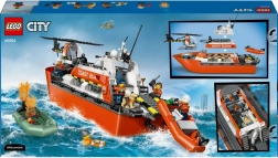 Pachetul include și o barcă verde mai mică, cu elemente de flăcări pentru intervenții dramatice, și un elicopter cu cabina ce se deschide și rotoare care se învârt pentru sprijin aerian. Cinci minifigurine salvatori în veste portocalii, un câine de salvare și accesorii precum stingător, trusă medicală, stație radio și colaci de salvare stimulează povestirea creativă.