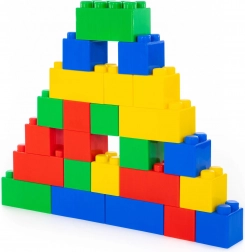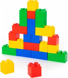 Set mare de construcție pentru copii cu 24 de piese de la Wader, oferă joacă sigură și distractivă încă de la 1 an. Piesele colorate și extra mari, cu dimensiuni de 21,5 × 10,5 × 12 cm, susțin motricitatea fină, creativitatea și construcția fără risc de înghițire.