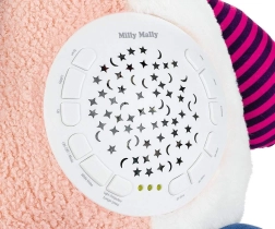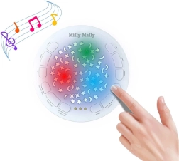Puteți seta cu ușurință temporizatorul la 30, 60 sau 90 de minute și volumul pe 5 niveluri. Modulul detașabil cu proiector permite spălarea jucăriei și utilizarea separată a luminii și a sunetului. Potrivită de la naștere, respectă normele de siguranță.