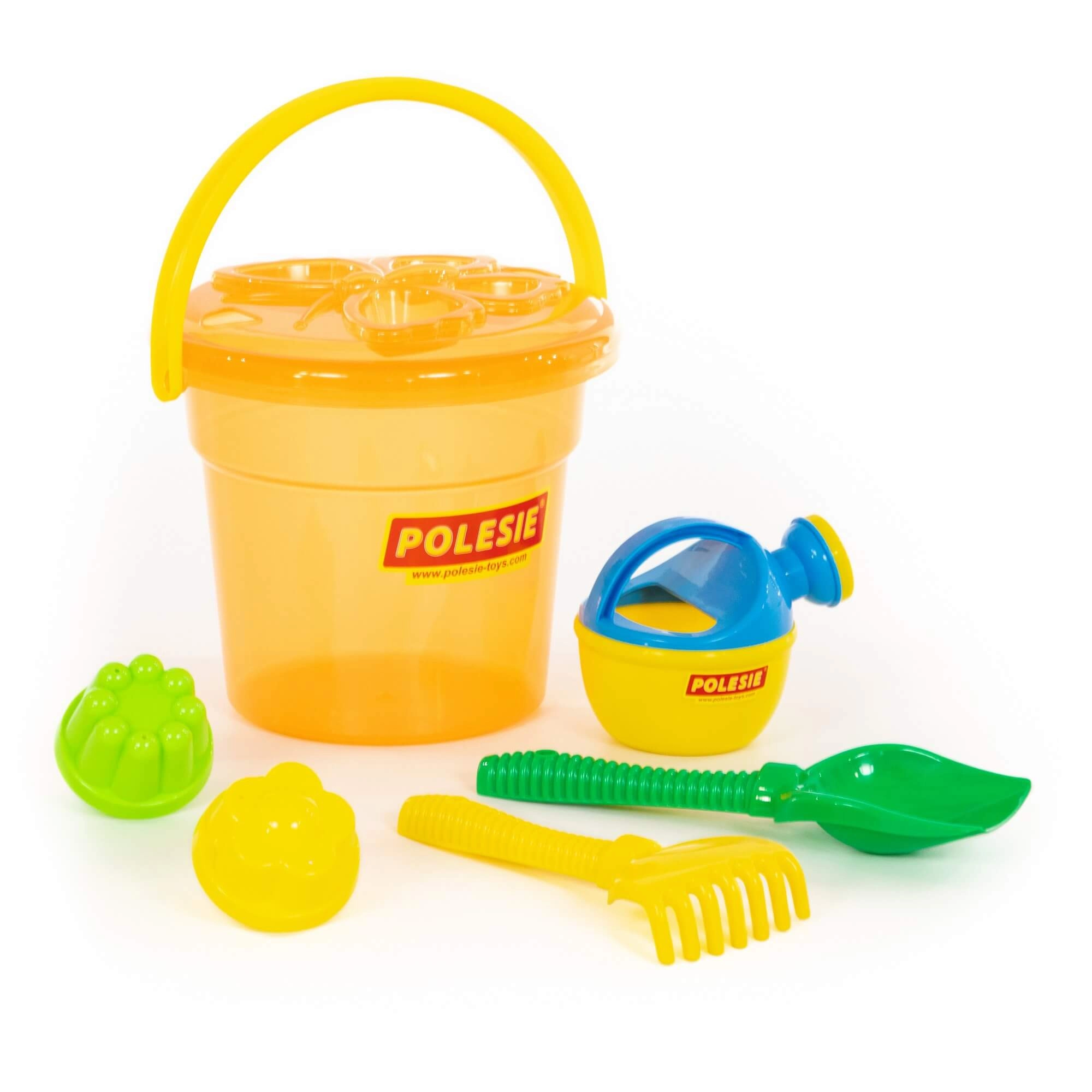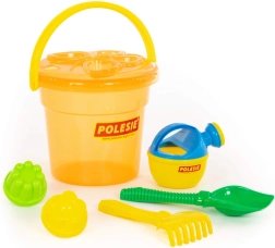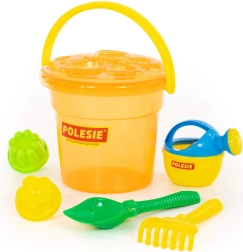 - Găleată și accesorii pentru joaca în nisip (lopățică, greblă, forme etc.)