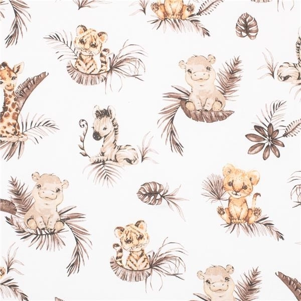 Datorită dimensiunilor de 90 × 150 cm, îmbracă perfect salteaua de 120 × 60 cm și pe partea inferioară. Motivele vesele pentru copii Safari îi vor bucura pe micii dormitori și vor înveseli interiorul pătuțului.