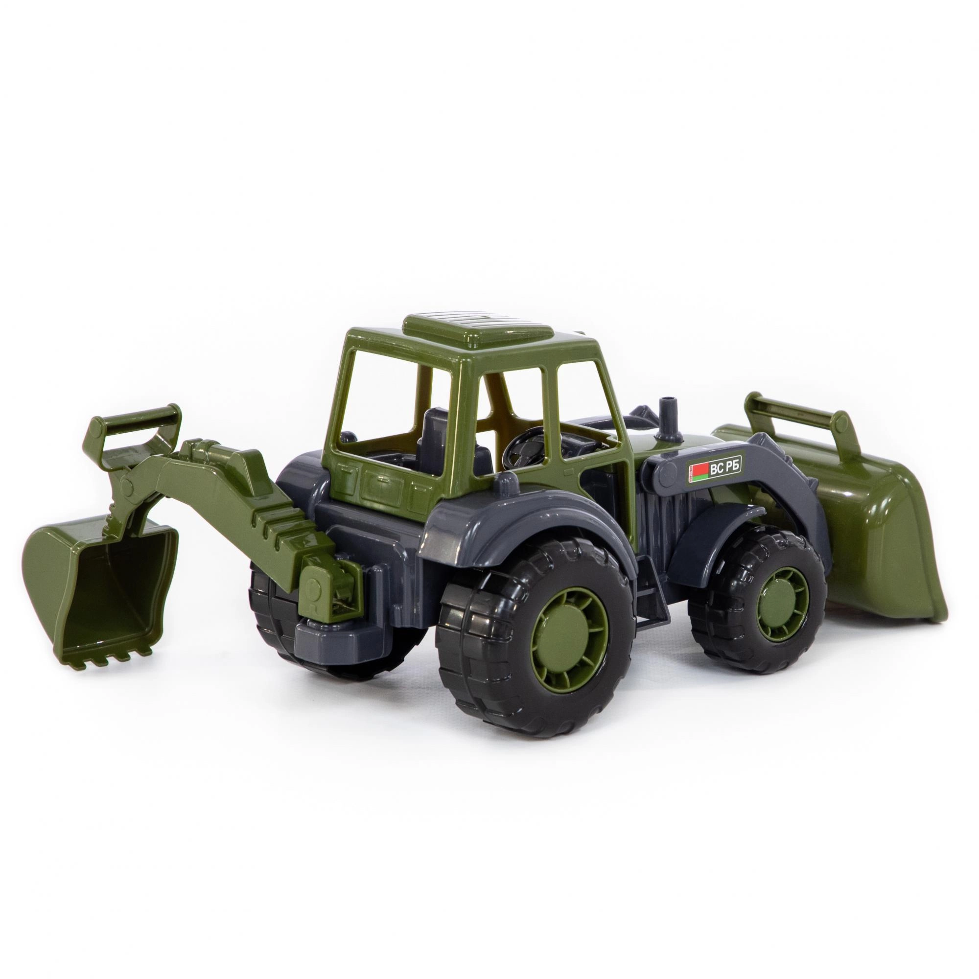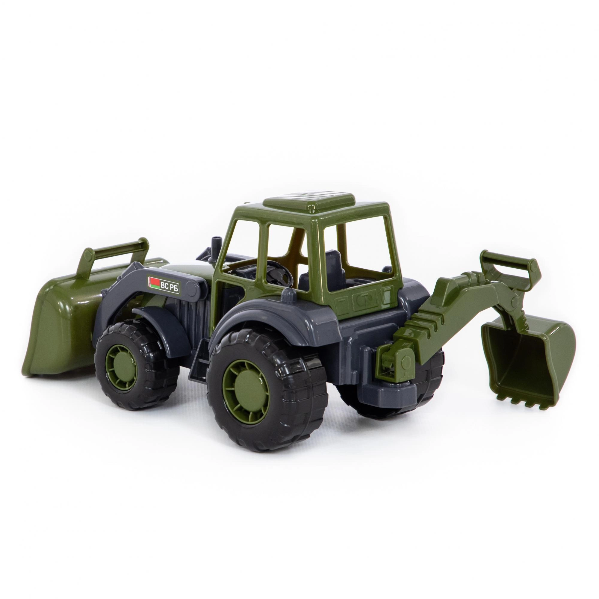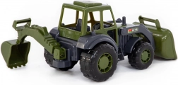 Descoperiți tractorul încărcător pentru copii, rezistent, în culori militare, ideal pentru micile șantiere din nisipar și din cameră. Datorită cupei frontale mobile și brațului excavator spate cu blocare în pozițiile extreme, copiii se bucură de încărcare, transfer și săpare realiste. Prelucrarea din plastic de calitate de la WADER garantează durabilitate îndelungată și joacă sigură încă de la 12 luni.