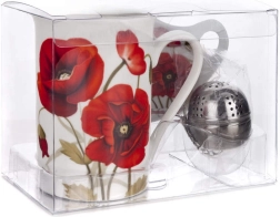 Elegantul set de ceai din 3 piese cu decor Red Poppy îi va încânta pe iubitorii de ceai prin execuția practică și aspectul atemporal. Conține o cană/ceainic din ceramică de 340 ml, sită metalică și tăviță pentru sită. Este potrivit pentru cuptorul cu microunde și mașina de spălat vase, oferind astfel întreținere ușoară și utilizare confortabilă zi de zi.
