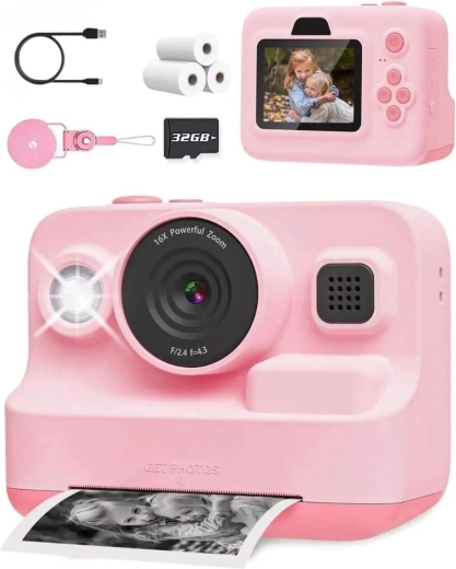 Aparatul foto roz pentru copii, cu imprimantă integrată, combină fotografierea, filmarea video și mini‑jocuri distractive într-un singur dispozitiv. Datorită tehnologiei de imprimare termică, copiii primesc printurile instant – fără cerneală și tonere. Include ecran de 2,4", video 1080P, card de 32GB în pachet, încărcare USB‑C și 3 role de hârtie pentru ore întregi de creație. Ideal pentru micii exploratori în excursii, la școală și la evenimente de familie. Imprimare instant, operare ușoară, construcție rezistentă și echipare bogată incluse în preț.