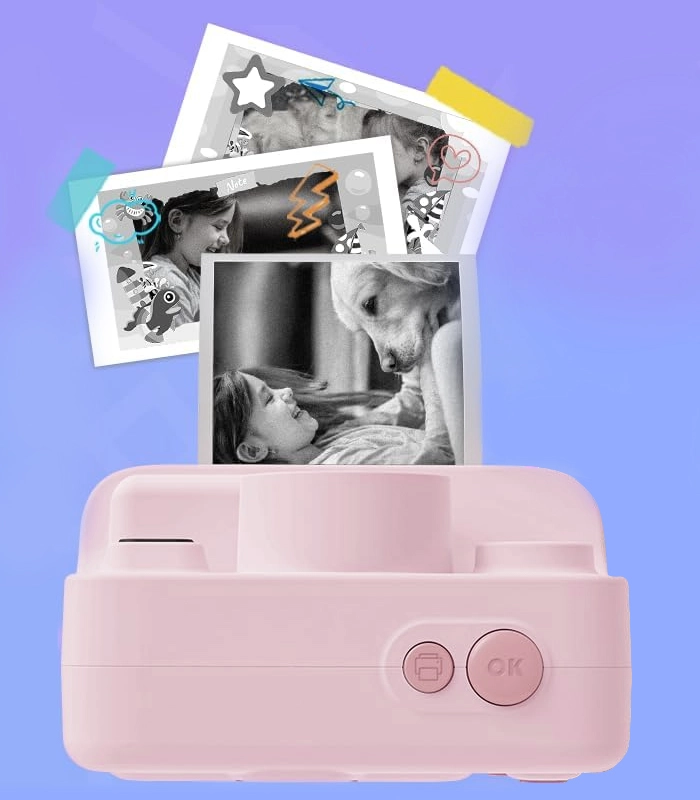 Susțineți creativitatea și curiozitatea copiilor cu un aparat foto multifuncțional care permite imprimarea instant a fotografiilor pe hârtie termică de 57 × 30 mm. Astfel, cei mici își pot crea imediat albume, panouri sau decorațiuni pentru cameră. Cu video 1080P și ecran de 2,4", previzualizarea și operarea sunt ușoare chiar și pentru începători.