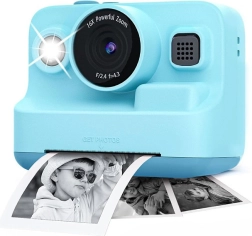 Aparat foto distractiv pentru copii cu imprimantă integrată pentru fotografii instant, filmare video la 1080P, ecran de 2,4" și jocuri integrate. Suportă microSD până la 32 GB, se încarcă prin USB‑C și printează pe hârtie termică 57 × 30 mm fără cerneală. În pachet sunt incluse 3 role de hârtie – ideal pentru copiii creativi, atât în călătorii, cât și în aventurile de zi cu zi.