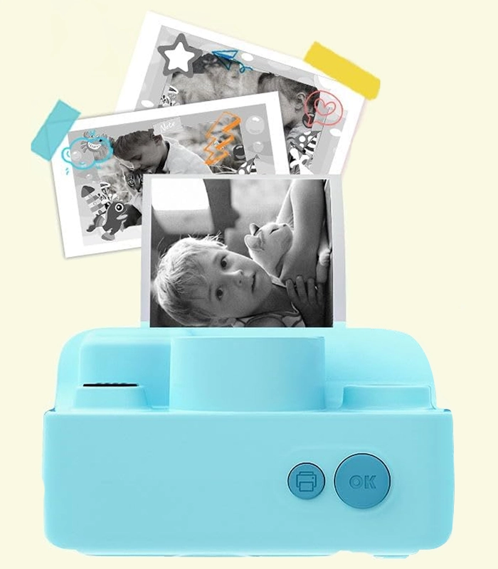 Imprimare instant fără cerneală care îi încântă pe micii creatori – copiii văd imediat rezultatul și își pot face albume, panouri și decorațiuni. Datorită imprimării termice, utilizarea este simplă și curată, trebuie doar înlocuită rola de hârtie. Construcția ușoară și rezistentă, cu suprafață antiderapantă, se potrivește perfect mâinilor mici.