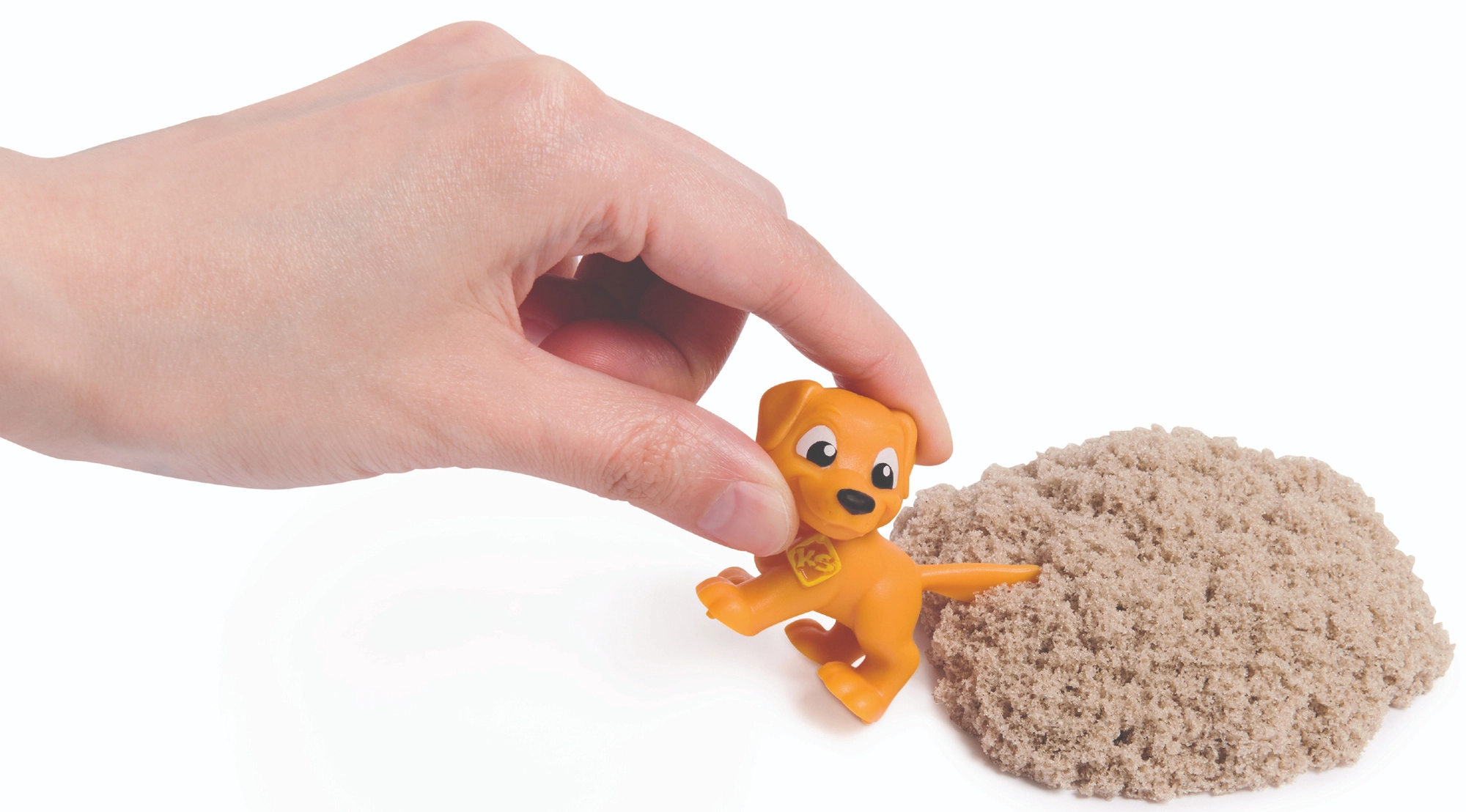 Cu acest set portabil, copiii își creează propriul parc pentru căței oriunde și oricând. Nisipul kinetic se modelează frumos, își păstrează forma și, datorită proprietăților sale, nu se împrăștie. Valiza servește drept tavă de joacă și ca spațiu de depozitare practic pentru toate piesele, astfel că strângerea după joacă durează doar un moment.
