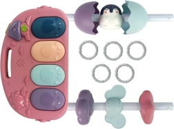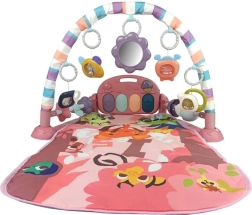 Această pătură de activități roz oferă bebelușului un loc sigur și stimulativ pentru joacă. Salteaua moale, cu motive colorate, două arcade și jucării suspendate, dezvoltă văzul, simțul tactil și auzul. Pianul cu clape mari răsplătește fiecare apăsare cu tonuri plăcute și motivează copilul la mișcare și explorare.