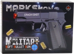 Modelul este realizat din plastic rezistent, iar designul negru este stilat și universal. În pachet veți găsi 10 gloanțe din plastic și 2 cartușe, care pot fi reutilizate, astfel încât copiii se pot distra mult timp – atât acasă, cât și în curte.