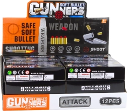 Pachetul include 10 gloanțe din plastic și 2 cartușe, care pot fi reutilizate.