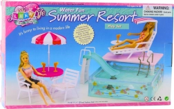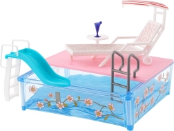 Stațiunea de vară pentru păpuși aduce tot ce este necesar pentru distracția de vacanță: o piscină stilată ce poate fi umplută cu apă, un tobogan funcțional cu scară, un colț confortabil cu șezlong și un set de grădină cu masă, scaune și umbrelă. Datorită culorilor vesele și detaliilor atent proiectate, copiii pot crea cu ușurință propriile scenete – de la relaxare la piscină până la petreceri estivale.
