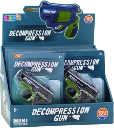 Pistol de jucărie pentru copii, ușor și compact, cu încărcător pentru 8 gloanțesigur și distractiv pentru copii de la 6 ani. Datorită prizei ergonomice și plasticului rezistent, se ține bine în mână și suportă utilizarea frecventă. Dimensiunile reduse de 12,5 × 8,5 cm sunt ideale atât afară, cât și în casă. Culoarea este aleasă aleatoriu.