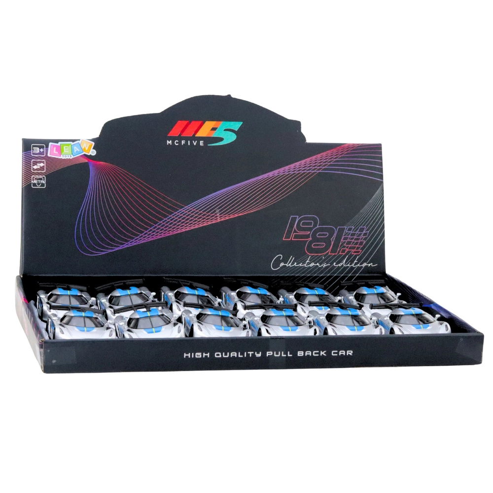 Descoperiți o mașinuță de curse compactă, care se remarcă prin caroserie metalică rezistentă și un aspect sport modern. Este suficient să o trageți ușor înapoi, iar datorită mecanismului pull-back pornește înainte. Ușile deschise adaugă autenticitate și invită la explorarea interiorului detaliat.