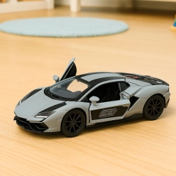 Mașinuța de curse metalică stilată la scară 1:32 îi va încânta pe micii și marii fani ai vitezei. Oferă caroserie metalică solidă, uși deschizabile pentru un joc mai realist și un mecanism de întoarcere (pull-back), datorită căruia este suficient să o tragi înapoi, să o lași și să pornești în cursă. Dimensiunile compacte și designul sport în culoare gri cu detalii negre o fac o jucărie ideală și o piesă de colecție.