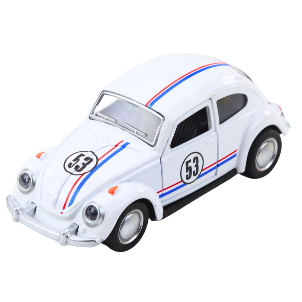 Model metalic stilat inspirat de legendarul „gândac” la scară 1:32, care îi va încânta atât pe copii, cât și pe colecționari. Oferă caroserie metalică, mecanism pull-back pentru rulare rapidă, uși deschise și detalii minuțioase într-o elegantă culoare albă.