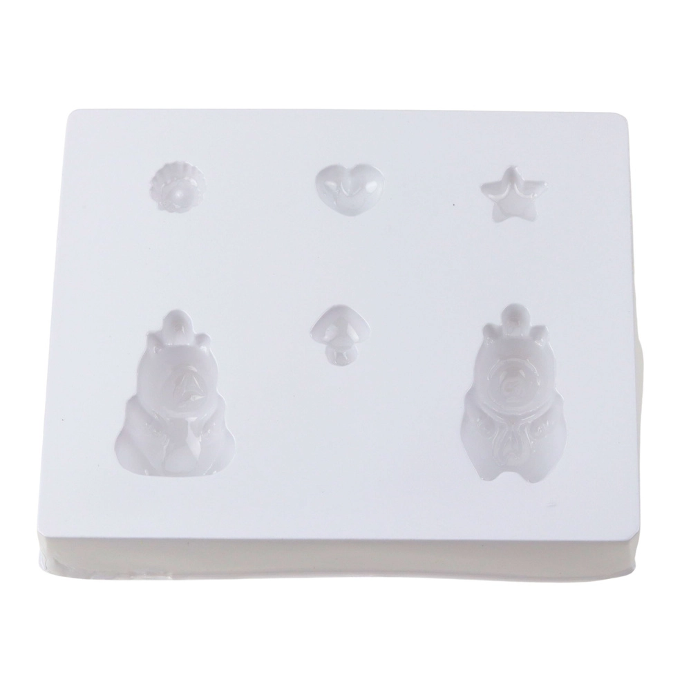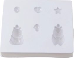Matrița flexibilă, cu motive precum ursuleț, inimă, stea sau burete, permite demontarea ușoară și rezultate variate la o singură turnare.