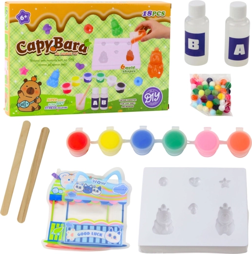 Pașii sunt simpli: amestecați gelul A cu gelul B, adăugați o picătură de pigment, turnați amestecul în forma aleasă și lăsați să se întărească. Rezultatul? Figurine moi și elastice, perfecte pentru joacă sau ca decorațiuni. Setul dezvoltă motricitatea fină, creativitatea și răbdarea.