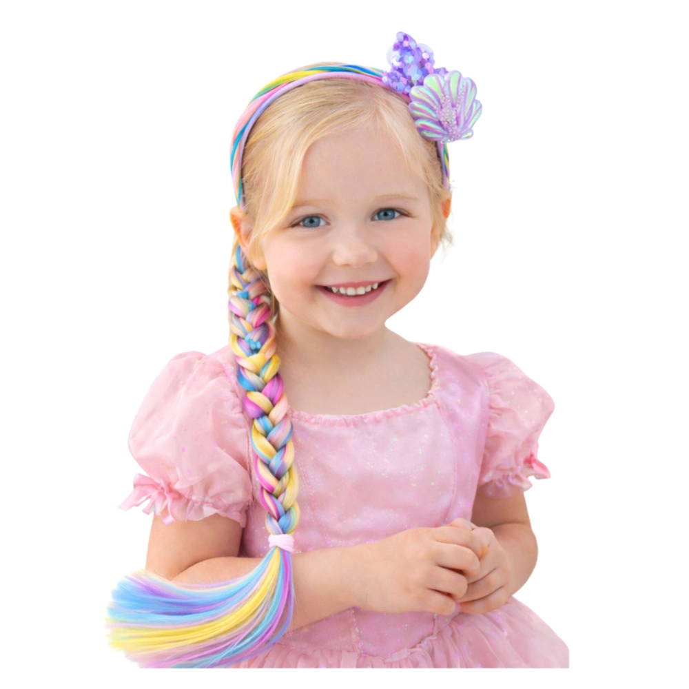 Oferiți-le copiilor bucuria de a crea coafuri cu o bentiță inspirată din lumea sirenelor. Șuvițele curcubeu lungi permit împletirea ușoară a cozilor spectaculoase și crearea de stiluri originale pentru petreceri, carnavaluri și joaca de zi cu zi. Decorul cu coadă de sirenă adaugă un aer magic aspectului.