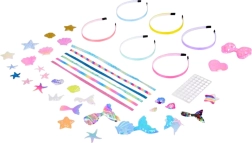 Descoperă un set creativ distractiv pentru copii, cu care își pot crea cu ușurință propriile bentițe în culori pastel cu motive marine. Datorită decorațiunilor autoadezive, creația este ușoară, sigură și fără lipici sau foarfecă. Setul dezvoltă creativitatea, motricitatea fină și permite realizarea accesoriilor originale cu solzi, stele de mare și cozi de sirenă.