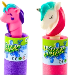 Pistolul cu apă cu pompă manuală este realizat din spumă moale pentru o priză comodă și joacă sigură chiar și pentru copiii mai mici. Este suficient să scufunzi vârful în apă, să tragi și apoi să pulverizezi un jet puternic – fără baterii și fără întreținere complicată. Figurină colorată de unicorn pe mâner, care oferă un aspect magic și motivează la joacă împreună.