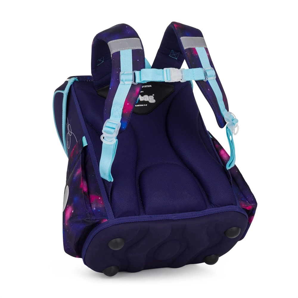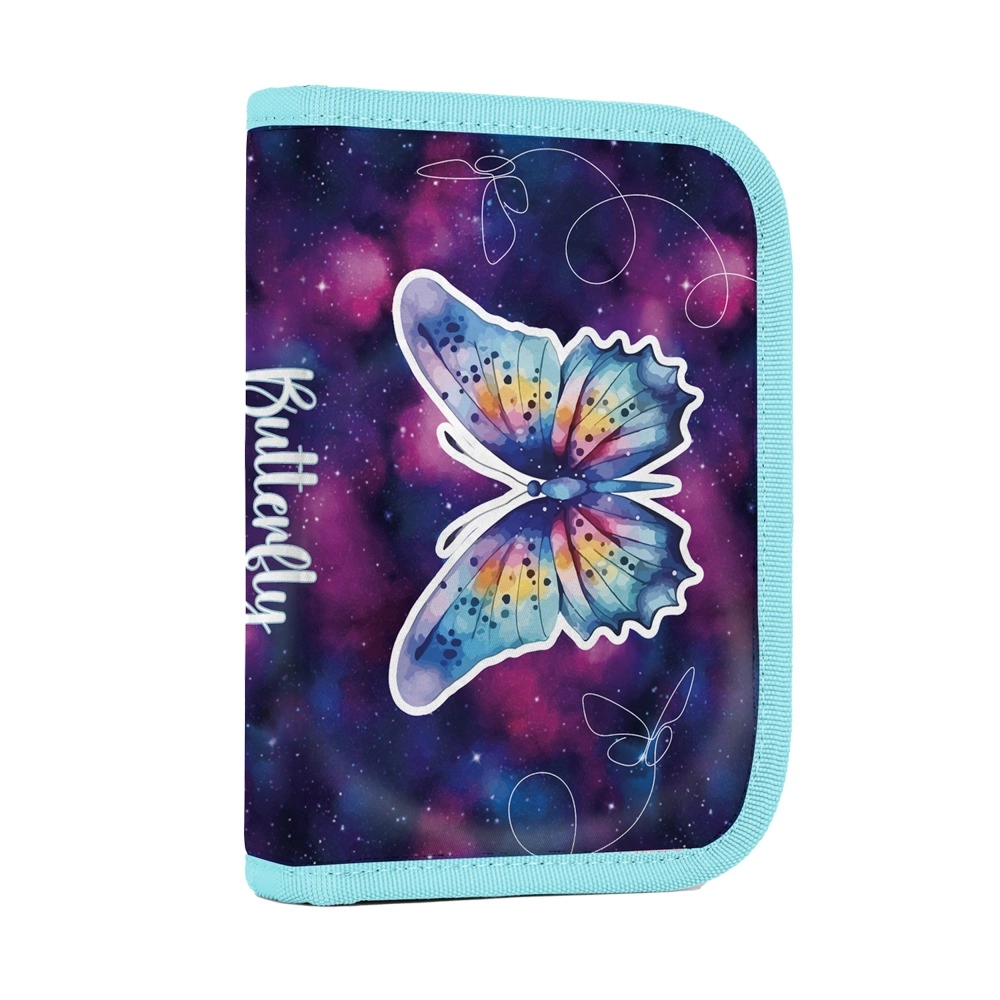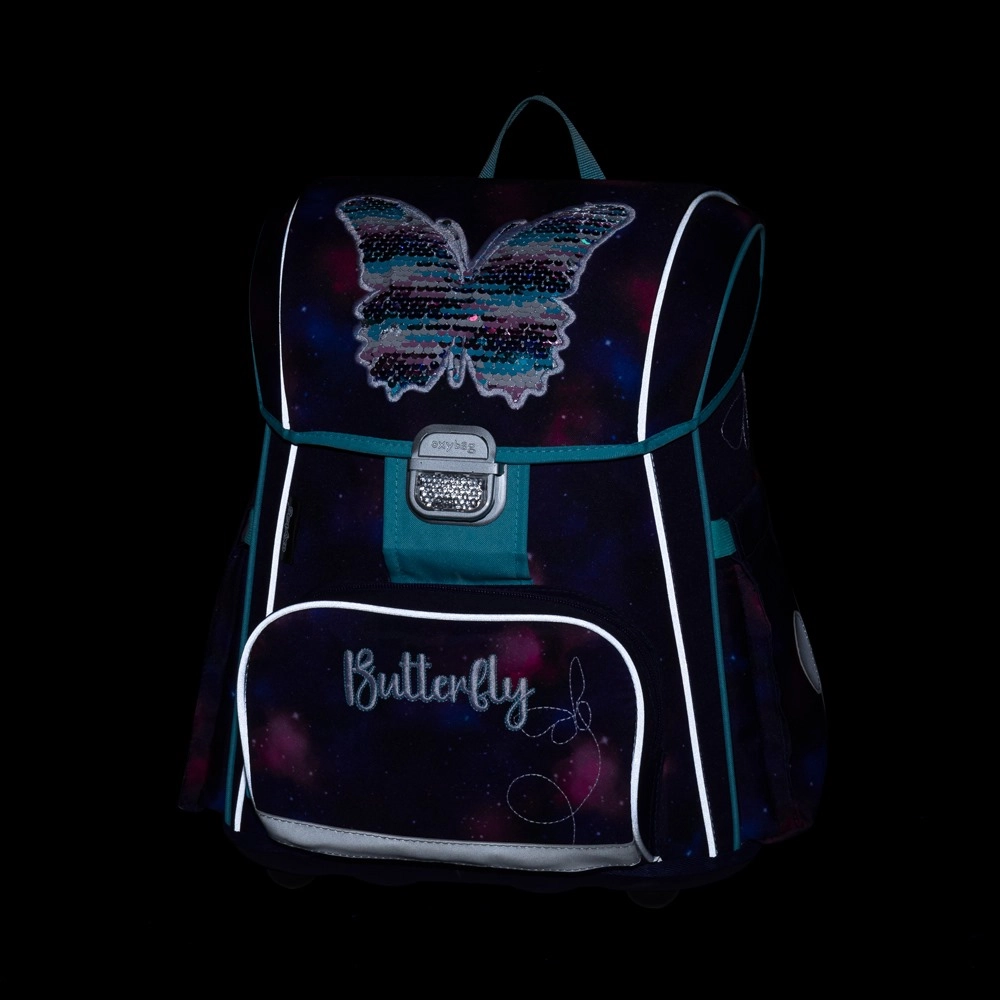 Set școlar stilat pentru clasele 1–2 cu motivul Fluture, conține un ghiozdan ergonomic, un săculeț practic pentru încălțăminte de schimb și un penar cu un singur etaj. Ghiozdanul are spate cu formă anatomică, căptușeală respirabilă și bretele late căptușite pentru purtare confortabilă. Oferă o compartimentare spațioasă pentru rechizite, fund rigid împotriva răsturnării și cataramă de siguranță cu element reflectorizant pentru vizibilitate sporită.
