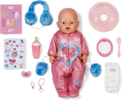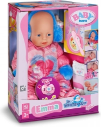 Păpușa BABY born Emma, cu înălțimea de 43 cm, este creată pentru micii îngrijitori. Este îmbrăcată într-un combinezon de iarnă stilat, cu clape pufoase pentru urechi și mănușițe, fiind pregătită pentru orice aventură. Aspectul realist și opțiunile de îngrijire susțin jocul de rol și îi învață pe copii empatia.