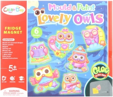 Set creativ pentru copii, cu ajutorul căruia pot realiza ușor propriile magneți în formă de bufnițe, care strălucesc în întuneric. Pachetul conține tot ce este necesar – gips, formă cu 6 modele, culori, pensulă, magneți și instrucțiuni. Distracție ideală pentru copii de la 5 ani și un cadou grozav pentru micii creatori.