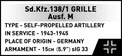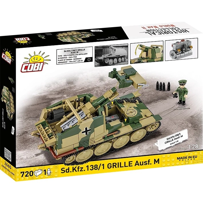 Descoperă legendarul „Pui/Grille”, un tun autopropulsat bazat pe șasiul Panzer 38(t), reprodus cu precizie din cărămizi COBI. Turnările exacte cu imprimeuri de calitate, camuflajul, plăcuța și proporțiile autentice fac din acest model o piesă de colecție atrăgătoare și un set educativ excelent.