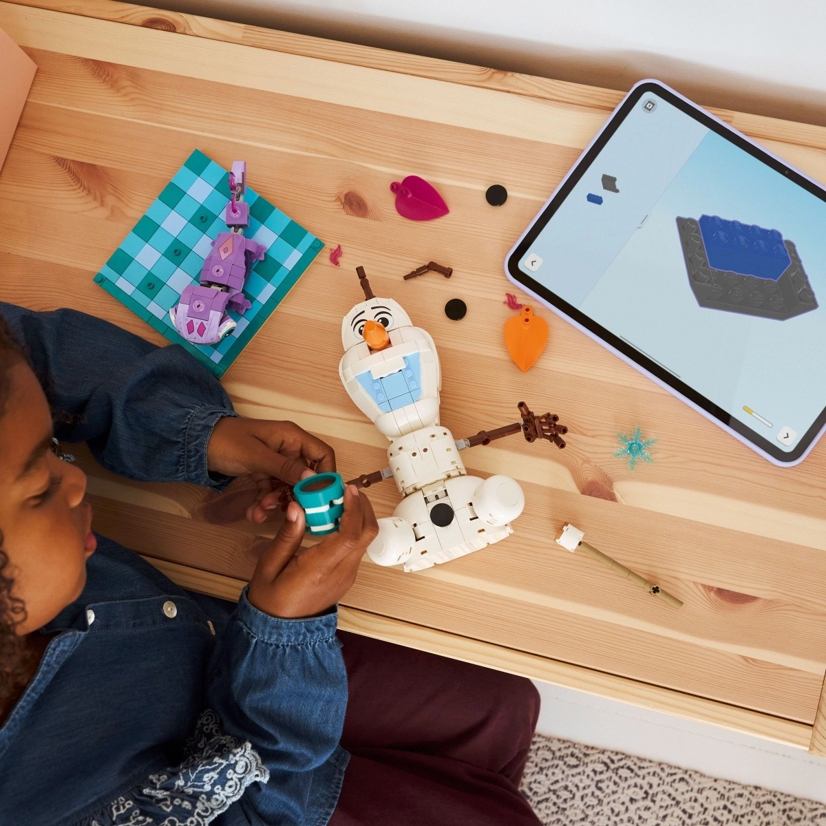 Copiilor le vor plăcea brațele mobile și expresia feței lui Olaf, accesoriile precum cana, fulgul de zăpadă și bezeaua pe băț, precum și posibilitatea de a crea propriile scenete. Cu aplicația LEGO Builder, pot mări și roti construcția în 3D, salva progresul și finaliza cu ușurință fiecare pas.