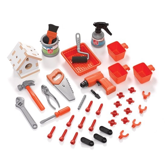 Kit complet, de la bormașină cu sunet la ciocan și fierăstrău, până la accesorii de pictură. Copiii au tot ce le trebuie pentru propriile proiecte și imaginație.