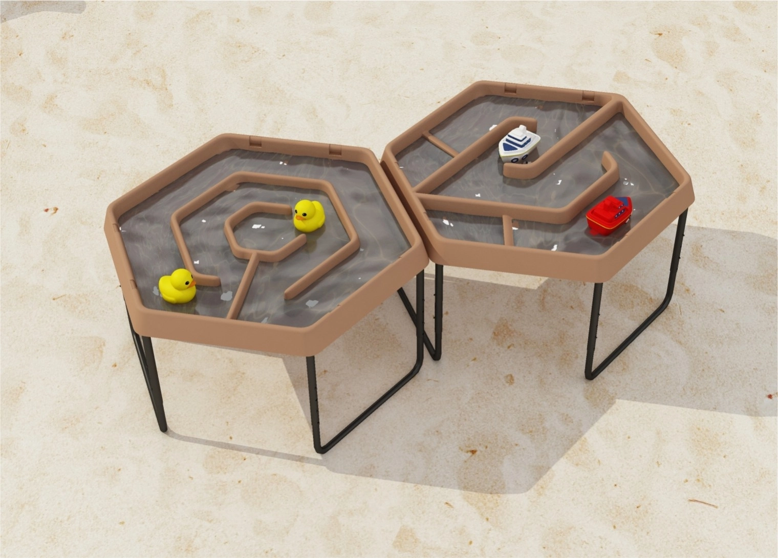 Labirintul hexagonal de apă MASTERKIDZ este ideal pentru joaca cu apă, bărcuțe și rățuște, observarea curgerii și a schimbărilor de direcție. Suportul metalic stabil, cu posibilitate de reglare a înălțimii, crește odată cu copilul și asigură acces comod din toate părțile. Datorită întreținerii ușoare, masa este excelentă pentru acasă, grădinițe și colțuri senzoriale.