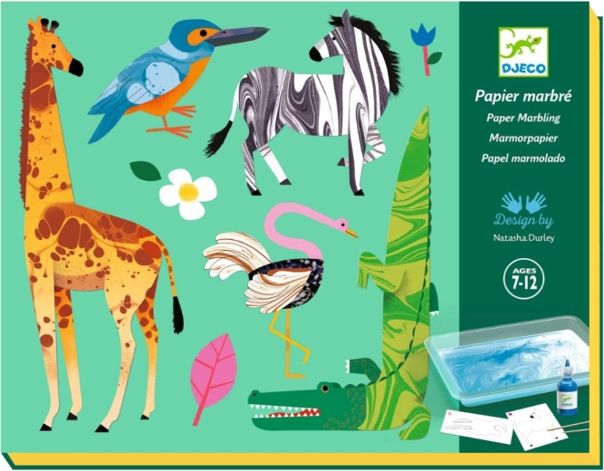 Descoperă magia marmoratului cu setul creativ DJECO – Animale. Utilizare ușoară și rezultate superbe care îi vor încânta pe copii și pe adulți. Creează imagini originale cu motive animale folosind cerneluri colorate și tehnica marmoratului – rapid, curat și cu efect garantat. Ideal pentru dezvoltarea creativității și a motricității fine.
