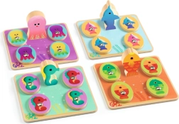 Acest set creativ de jocuri DJECO cu tematică marină oferă copiilor numeroase moduri de a se juca și de a-și dezvolta abilitățile. Pescuitul magnetic antrenează precizia și concentrarea, iar jetoanele și pionii colorați susțin recunoașterea formelor și culorilor. Componentele din lemn sunt rezistente și plăcute la atingere, ideale pentru joaca de zi cu zi.