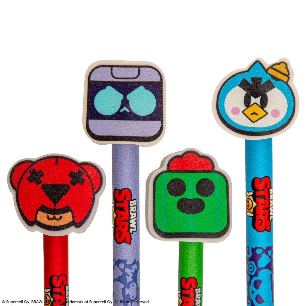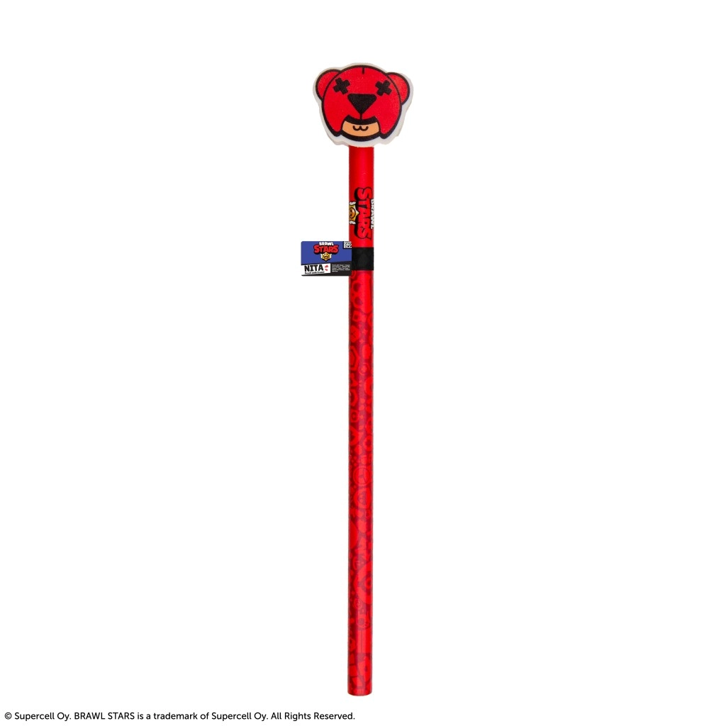 Acest creion licențiat BRAWL STARS, în roșu aprins, combină un instrument de scris practic cu un design jucăuș de colecție. În vârf este montată o gumă mare în formă de cap de urs, simbolul iconic al personajului Nita, completată de detalii negre pentru impact vizual maxim.