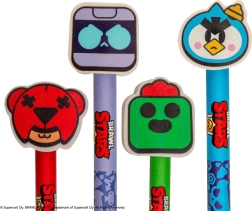 Acest creion cu radieră îi va încânta pe toți fanii mici și mari ai jocului Brawl Stars. Se remarcă prin designul verde intens inspirat de personajul Spike și prin motivele detaliate din joc, care oferă instrumentului de scris un aspect jucăuș. Pe corpul creionului este imprimat logo-ul oficial roșu, care confirmă originea licențiată.