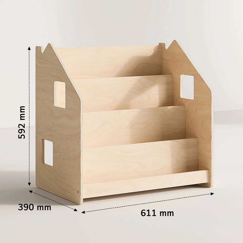 Suportul practic pentru cărți pentru copii din placaj de mesteacăn de calitate sprijină autonomia la citit și menține ordinea în cameră. Datorită expunerii frontale clare a coperților, copiii își aleg ușor cartea preferată și o pun la loc cu ușurință după ce au terminat. Oferă 4 rafturi spațioase și spațiu de depozitare posterior pentru cărți sau jucării, are o construcție robustă și sigură cu margini rotunjite și este finisat cu lac pe bază de apă.
